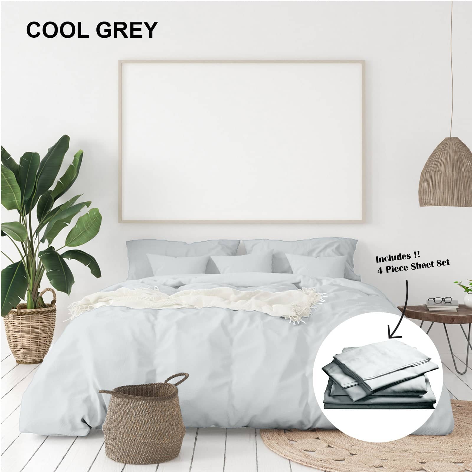 Royal Comfort 1000 Thread Count Bamboo Cotton Sheet and Quilt Cover Complete Set - King - Cool Grey