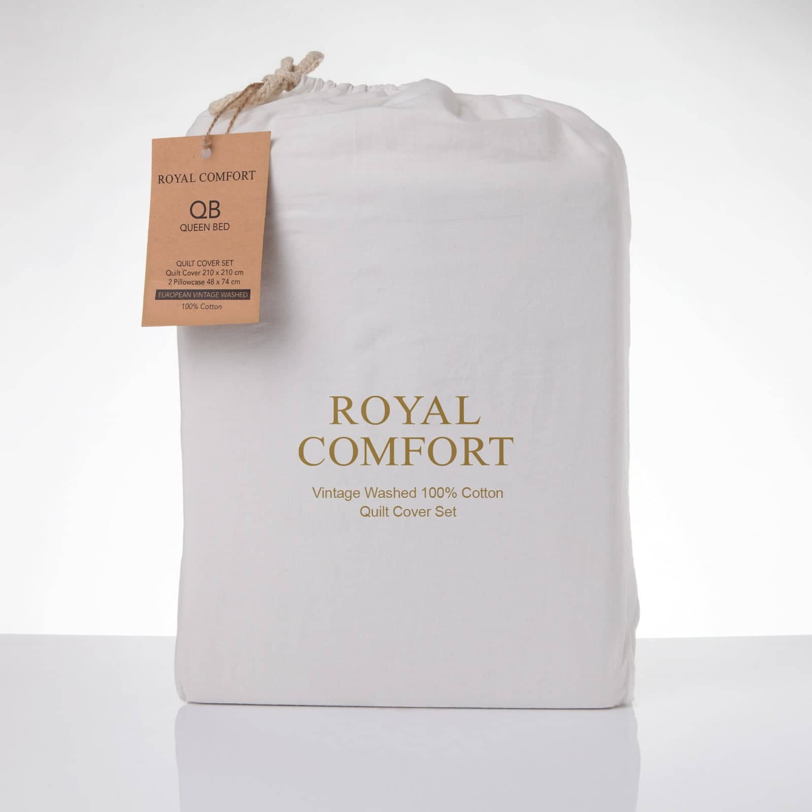 Royal Comfort Vintage Washed 100% Cotton Quilt Cover Set Bedding Ultra Soft - Single - White