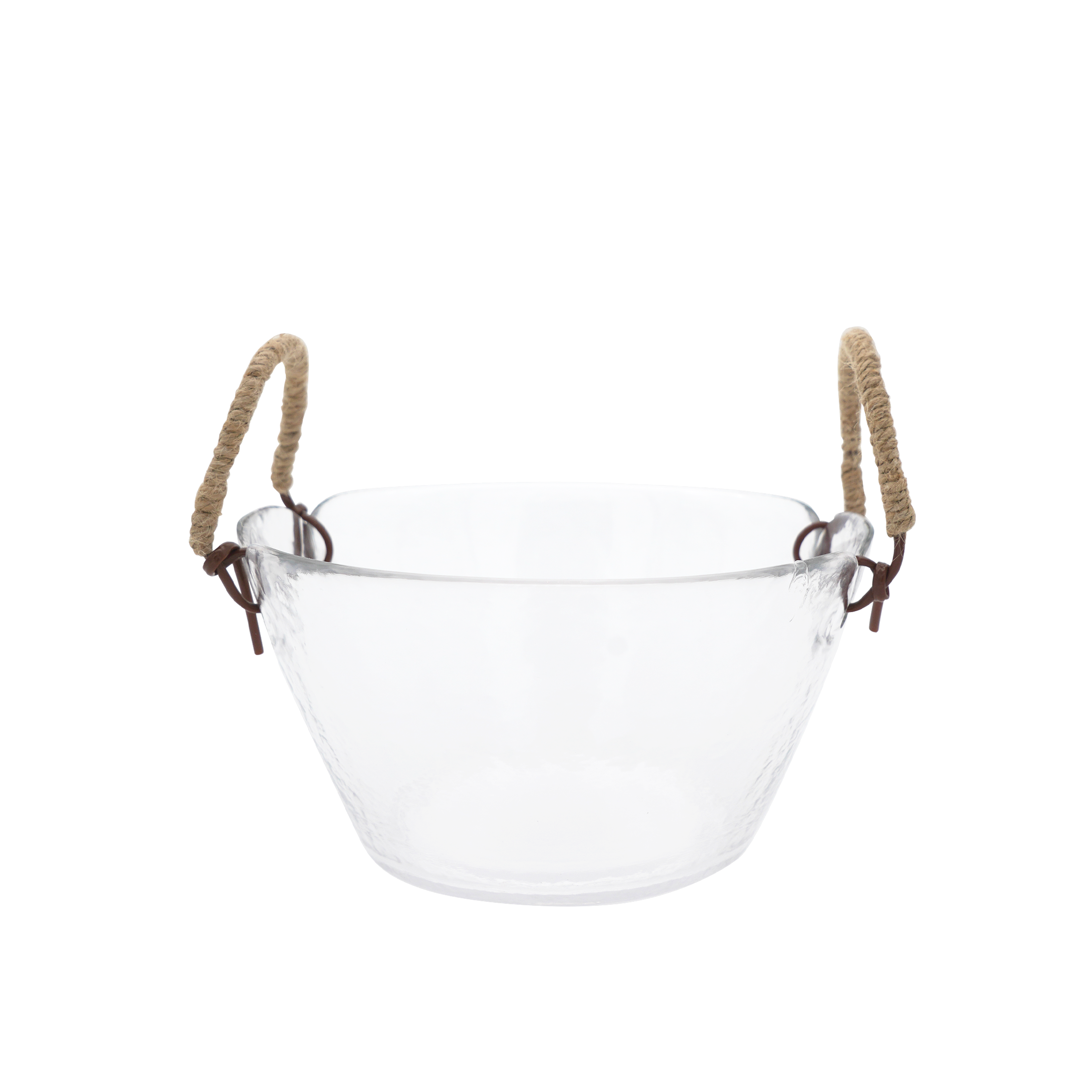 A rustic addition to any kitchen collection, this glass fruit bowls can be displayed on special occasions to serve fruit or sauces to be shared. Equally stunning on its own as a decorative piece, this salad bowl is crafted with the "balloton" technique with two leather handles wrapped with raffia, lending it its characteristic texture.