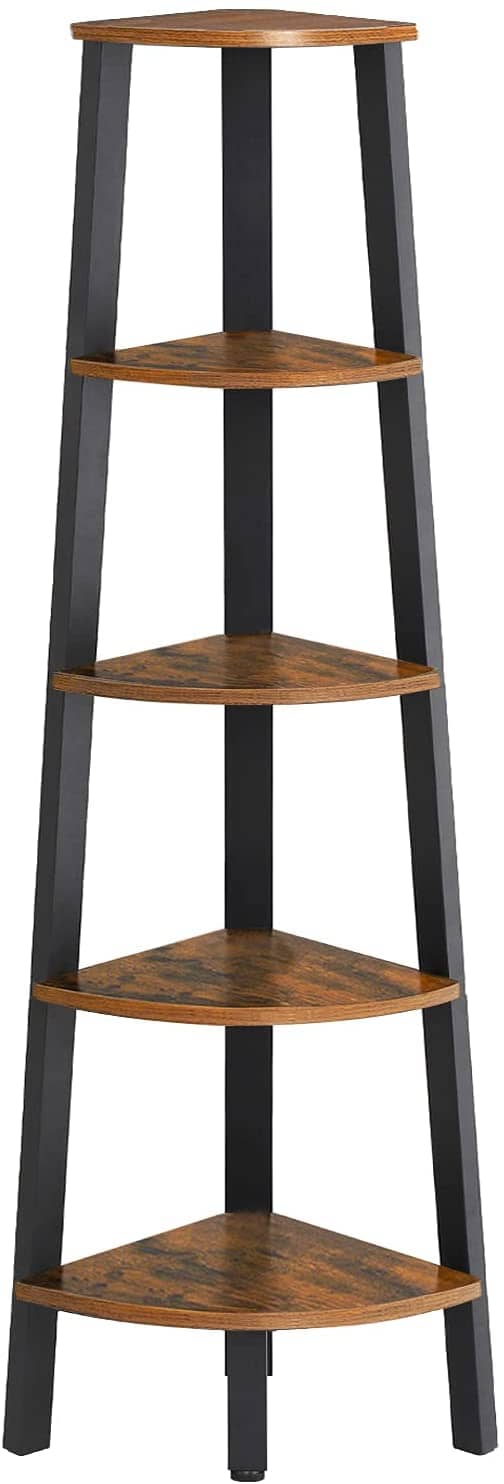 Rustic Brown Metal Frame 5 Tier Corner Shelf