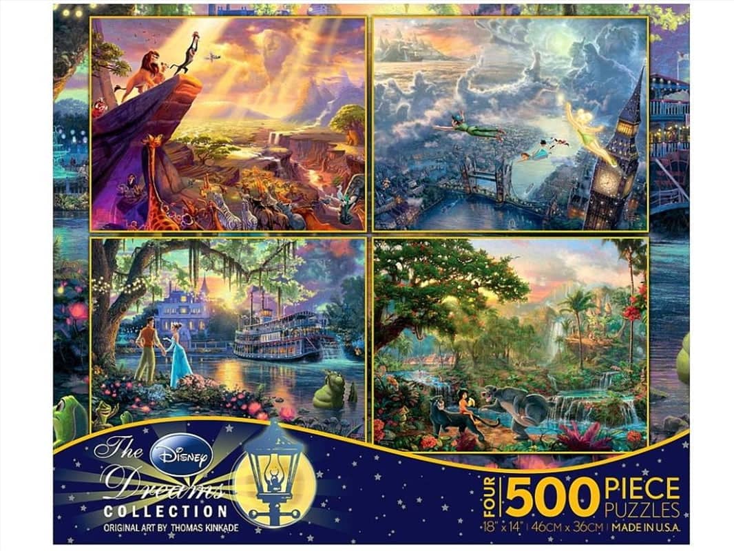 Thomas Kinkade captured the timeless magic of classic Disney stories and their captivating characters through the style of narrative panoramas. Each painting tells the entire story of a Disney film in one image, taking inspiration from art, sketches and other historic documents from the Disney Archives. This superb box contqains a set of four individual 500pc piece jigsaw puzzles, made in the USA.