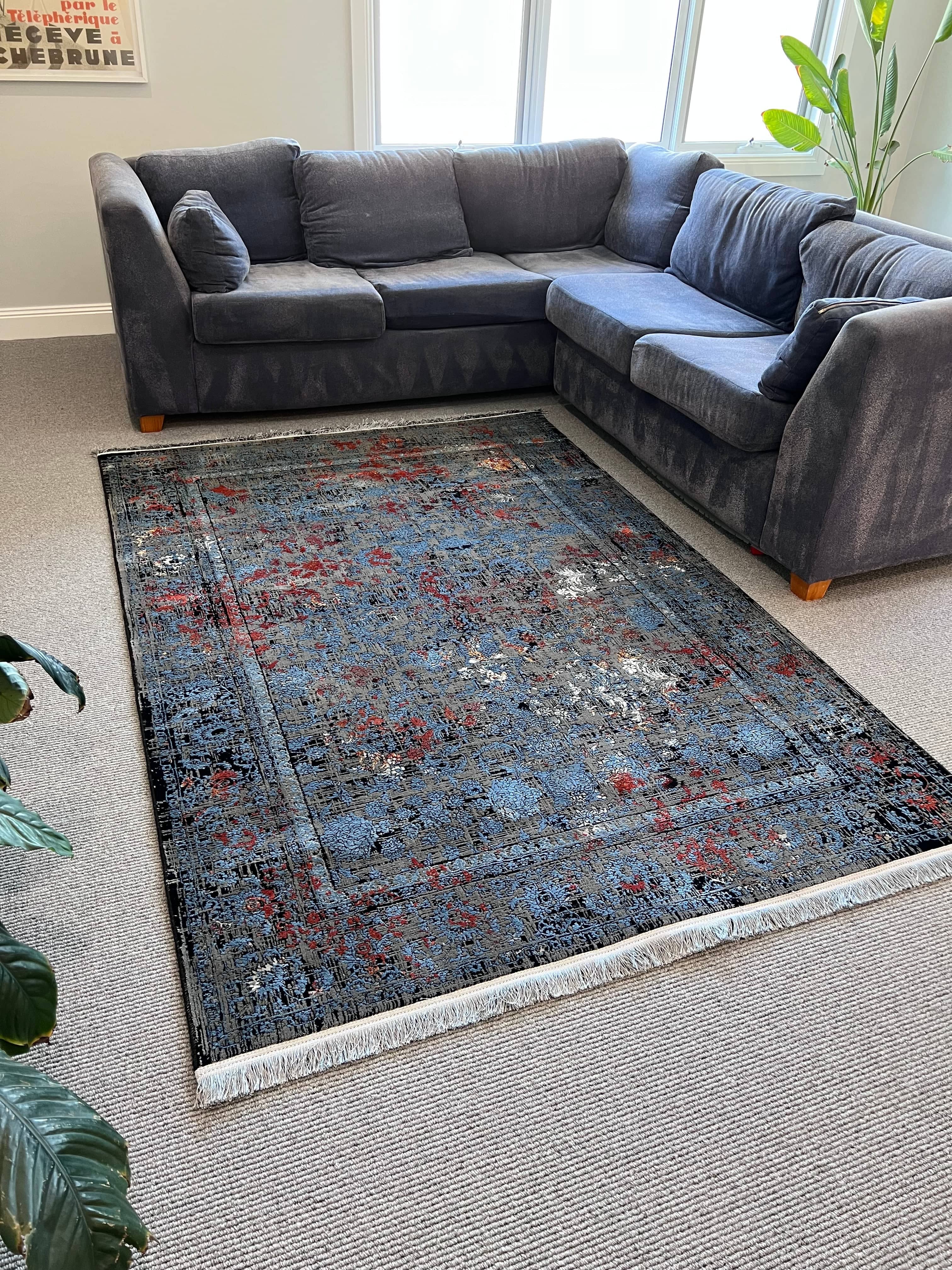 Despite being machine-made, Sapphire retains an authentic hand-made look. The stain resistant material of the rug makes it easier to maintain and wash, ideal for high-traffic living spaces. Other prominent features include the antibacterial and anti-allergy properties of the material, and the high-end durable quality that can last for years without wearing down. The soft feel of the rug is perfect for a family environment and gifts comfort and warmth to your floors.