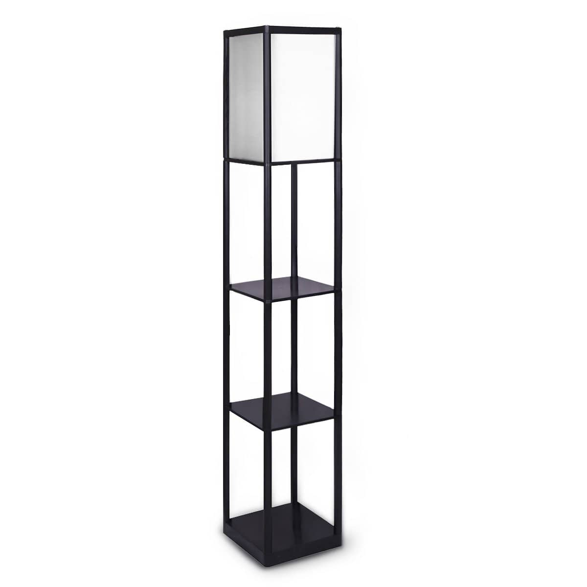 Sarantino Etagere Floor Lamp Shelves in Black Frame Fabric Shade