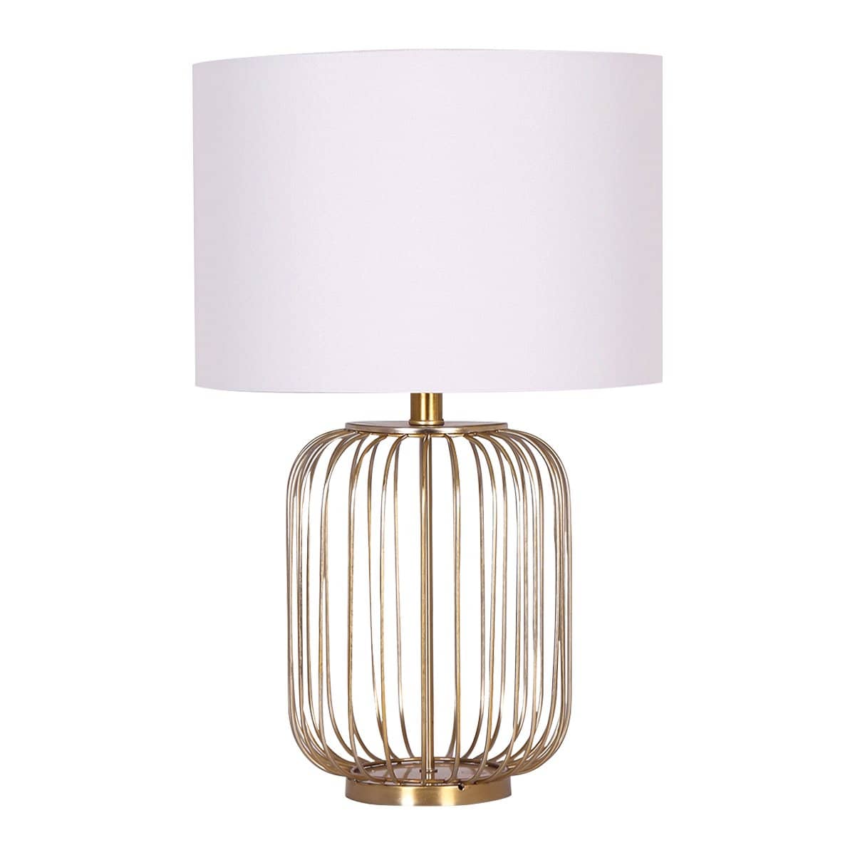 This modern table lamp features an elegant, hollow base in a rose gold finish. Topped off with a simple fabric drum shade, it exudes effortless style and romance perfect for contemporary interiors.
