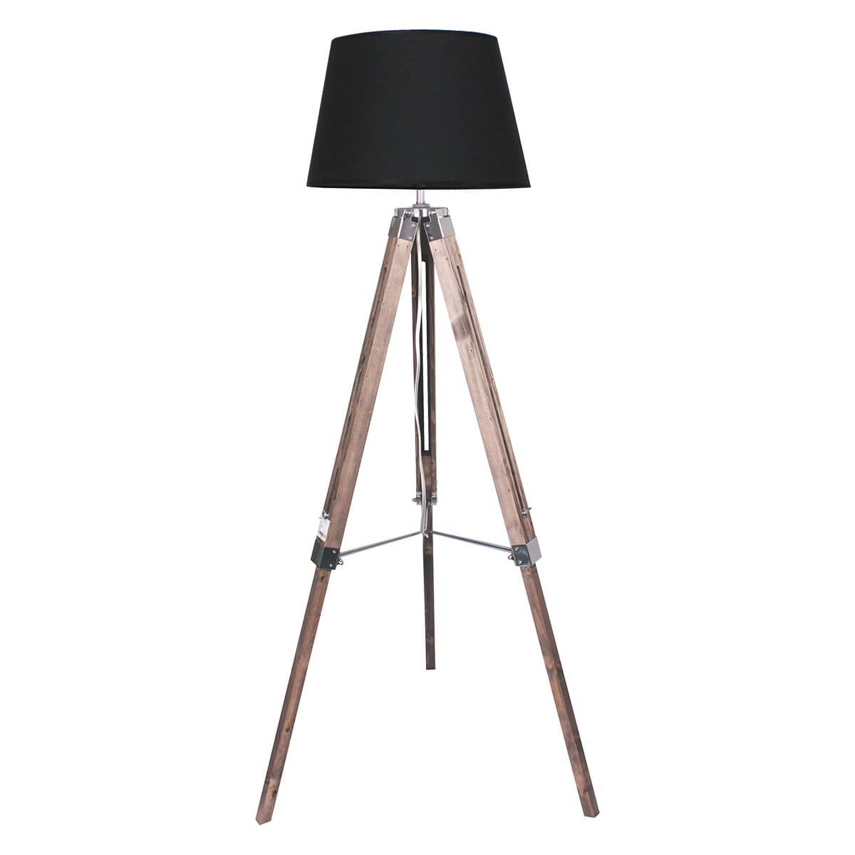 Sarantino Timber Tripod Floor Lamp Adjustable Height Taper Fabric