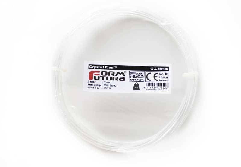 Crystal Flex is a high-performance and easy to use Styrene-Butadiene Copolymer based 3D printer filament, which combines strength, resilience, semi-flexibility and transparency with printability.