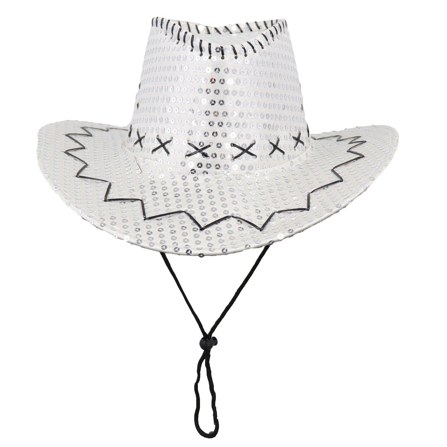 Sequin Cowboy Hat Glitter Cap Western Trilby Shiny Cowgirl Dress Up Party Wear, Silver
