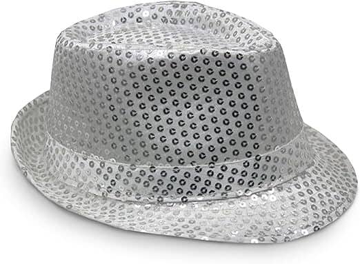SEQUIN HAT Trilby Fedora Glitter Cap Costume Dance Party - Silver