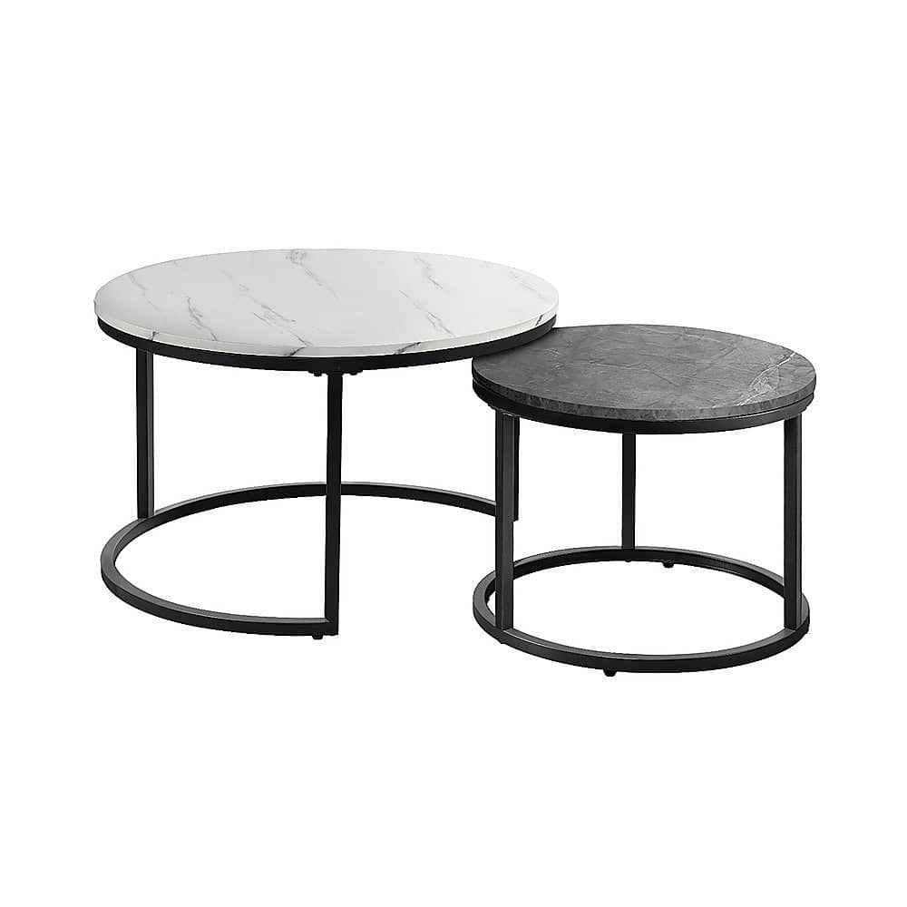 Set of 2 Coffee Table Round Marble Nesting Side End Table Furniture