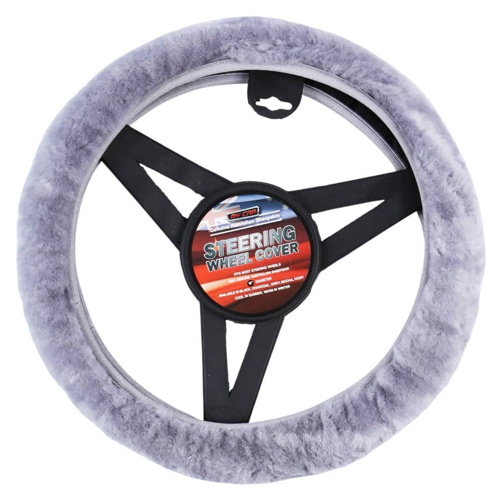 Sheepskin Steering Wheel Cover Luxury - Grey