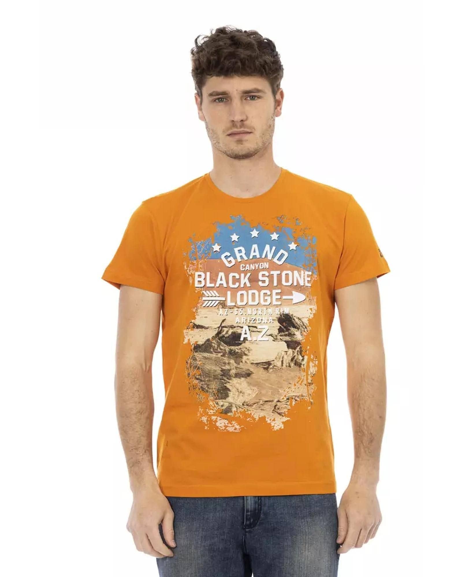 Orange Cotton T-Shirt Short Sleeve with Round Neck Front Print Made from high-quality cotton Comfortable and durable Versatile addition to any wardrobe Perfect for men