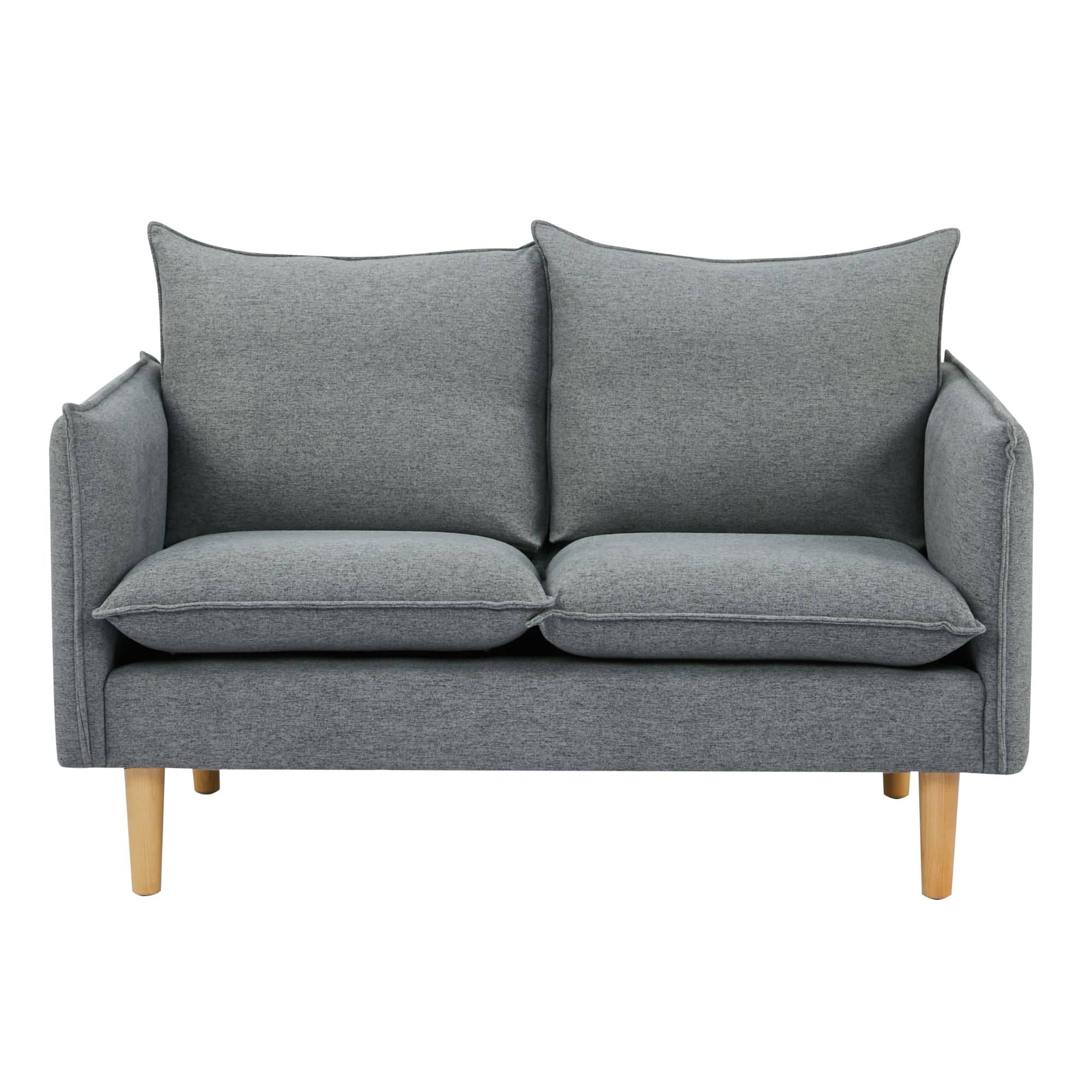 This good looking 2-seater sofa in a dark grey colour assures the best comfort and relaxation. The Scandinavian-style furniture is upholstered in plush upholstery made of high-performance 100% polyester. A fixed cover with piping on it gives the sofa a charming look. The solid pine wood and plywood frame make the sofa light and highly durable. The sturdy frame with seating support made of foam, fabric, and high-tensile S springs ensures blissful comfort when you relax on it. Wooden legs in a natural wood colour give the furniture a strong base. The sofa is easy to assemble; only the legs need assembly. The long-lasting furniture comes with a 1-year warranty.