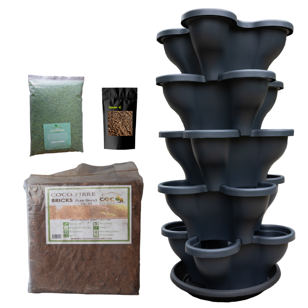 Single 5 Tier Large Verandah Planter Garden Kit (Inc Coir, A & B Nutrient and Bardee Superfly Organic Booster) - Charcoal
