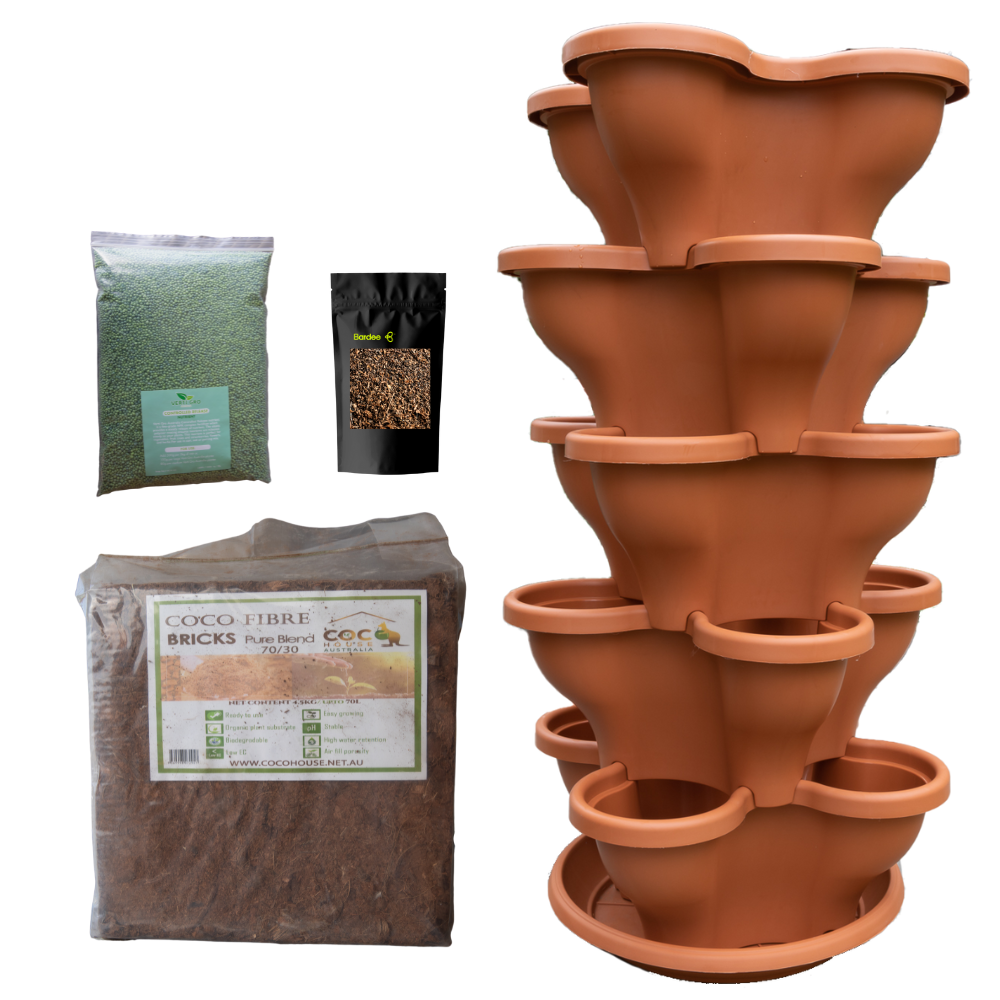 Single 5 Tier Large Verandah Planter Garden Kit (Inc Coir, A & B Nutrient and Bardee Superfly Organic Booster) - Terracotta