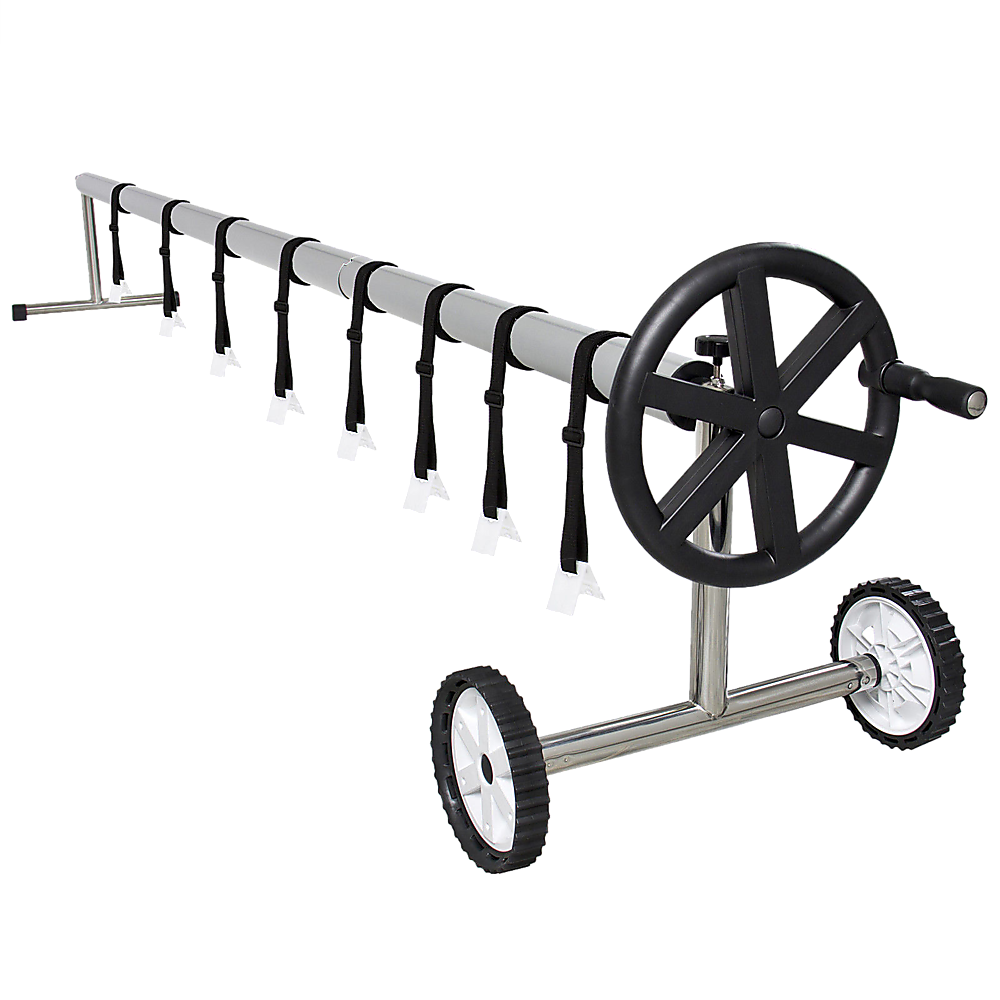 Three 2.44m sections with one 81mm diameter and two 76mm diameter, this roller can extend from 2.44m to 6.45m to specifically suit your pool size! The roller returns your blanket when not in use and features great wheels for convenience and portability. Includes straps to secure your blanket, a sturdy steel frame and locks on each side so that you can fix it in the position you like. Use the roller spinning wheel to wind your blanket in or out with ease. Take the hard work out of covering your pool this summer!