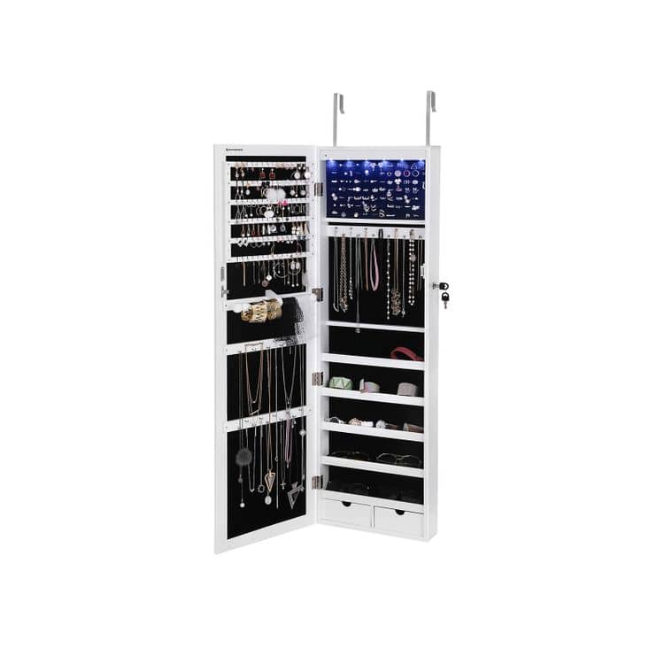SONGMICS 6 LEDs Mirror Jewelry Cabinet