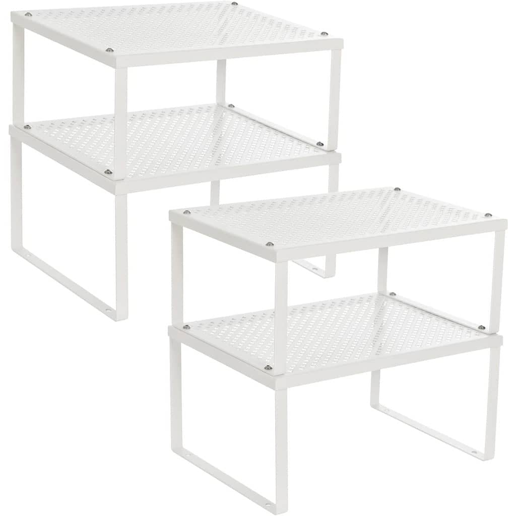 SONGMICS Cabinet Shelf Organizers Set of 4 Metal Kitchen Counter Shelves White KCS006W01