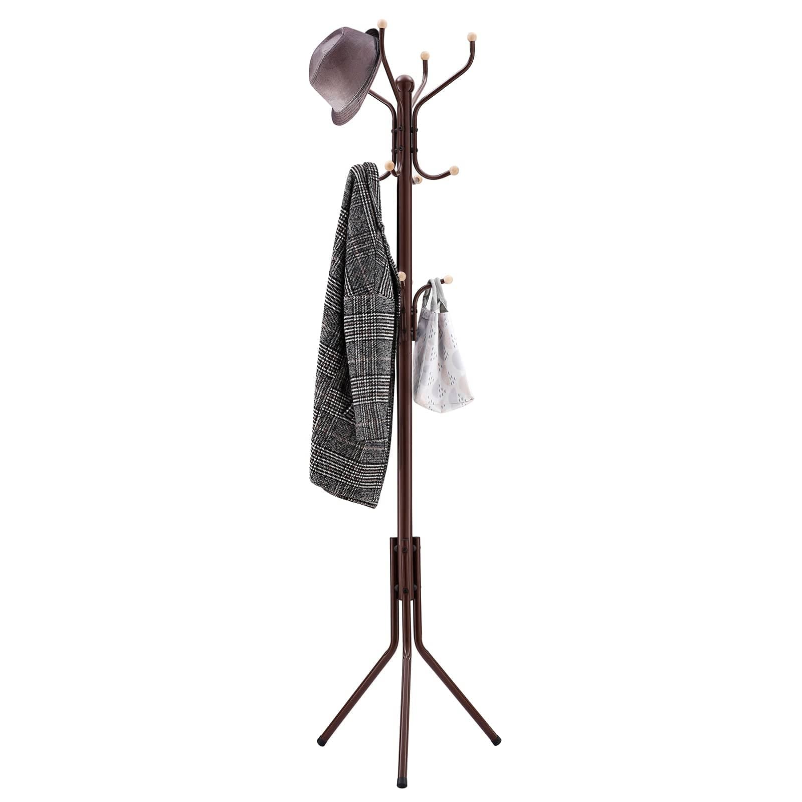 [Nice Look] The brown surface sets a warm tone and the wood accents on the hooks add some character, creating a stunning coat rack stand that will impress your guests