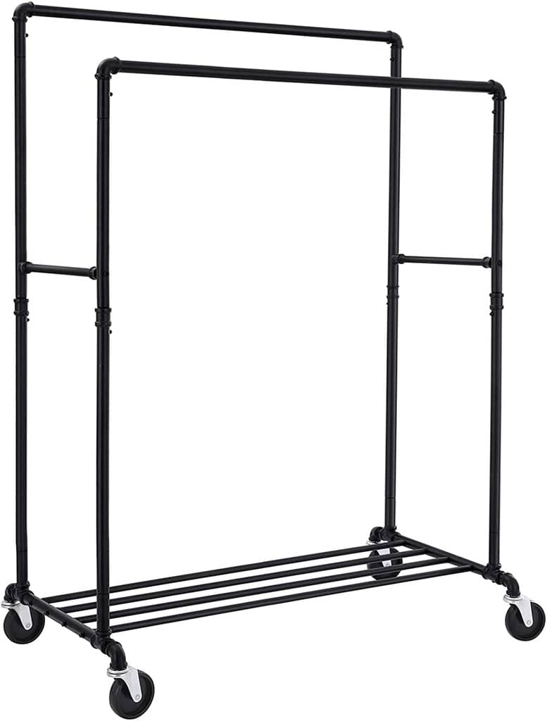 - Robust and Heavy Duty: Double hanging rail at different heights allows more storage for displaying different types of garments; robust steel structure can easily hold heavy winter jackets or coats up to 242 lb
