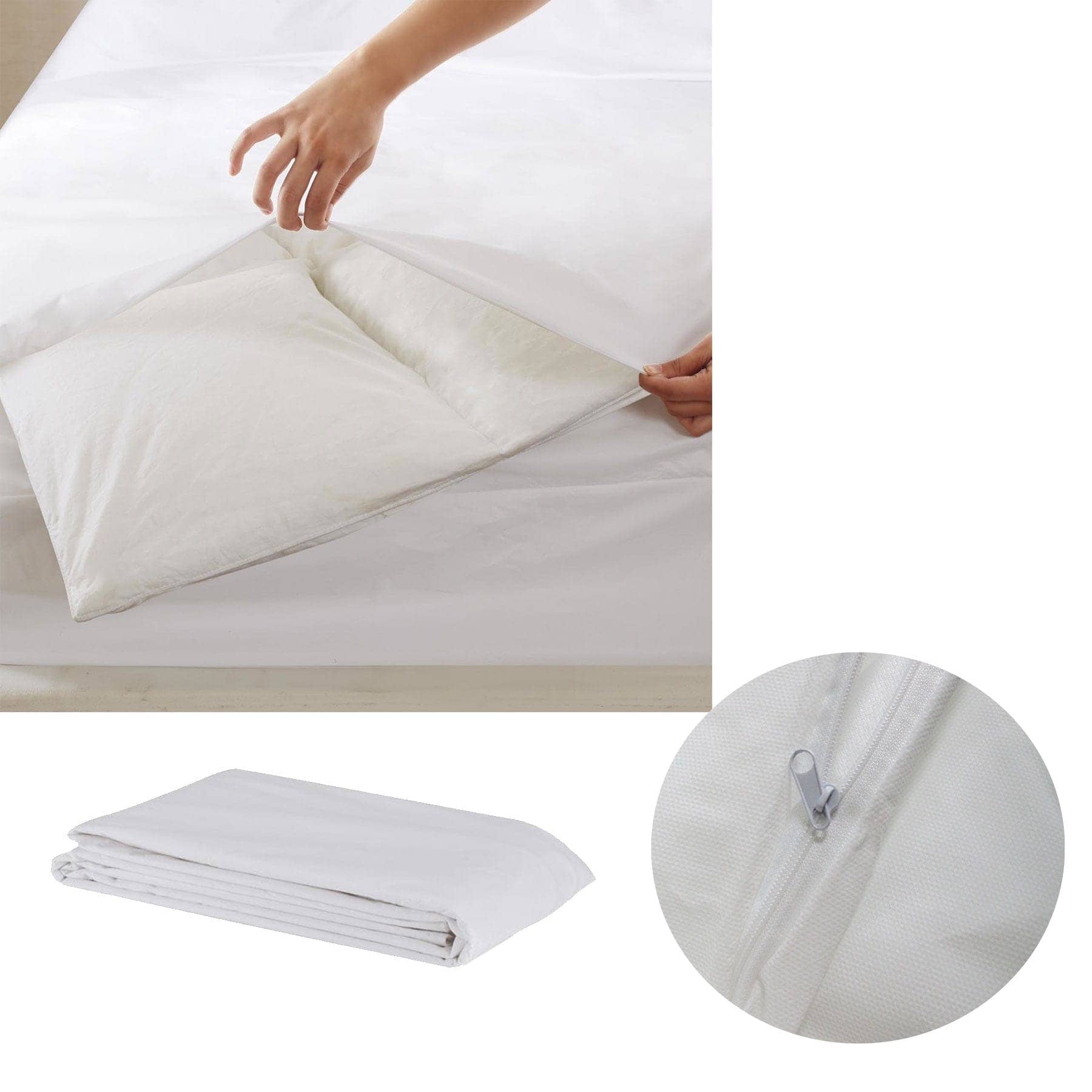 This Stain/ Water Resistant Quilt Protector will protect your quilt from stains, dust mites and allergens keeping your quilt secured. Features solid colour tone design which is perfect for all seasons. With zip opening for easy fitting and machine washable. It is made from high quality Synthetic Fibres material for all-day comfort.