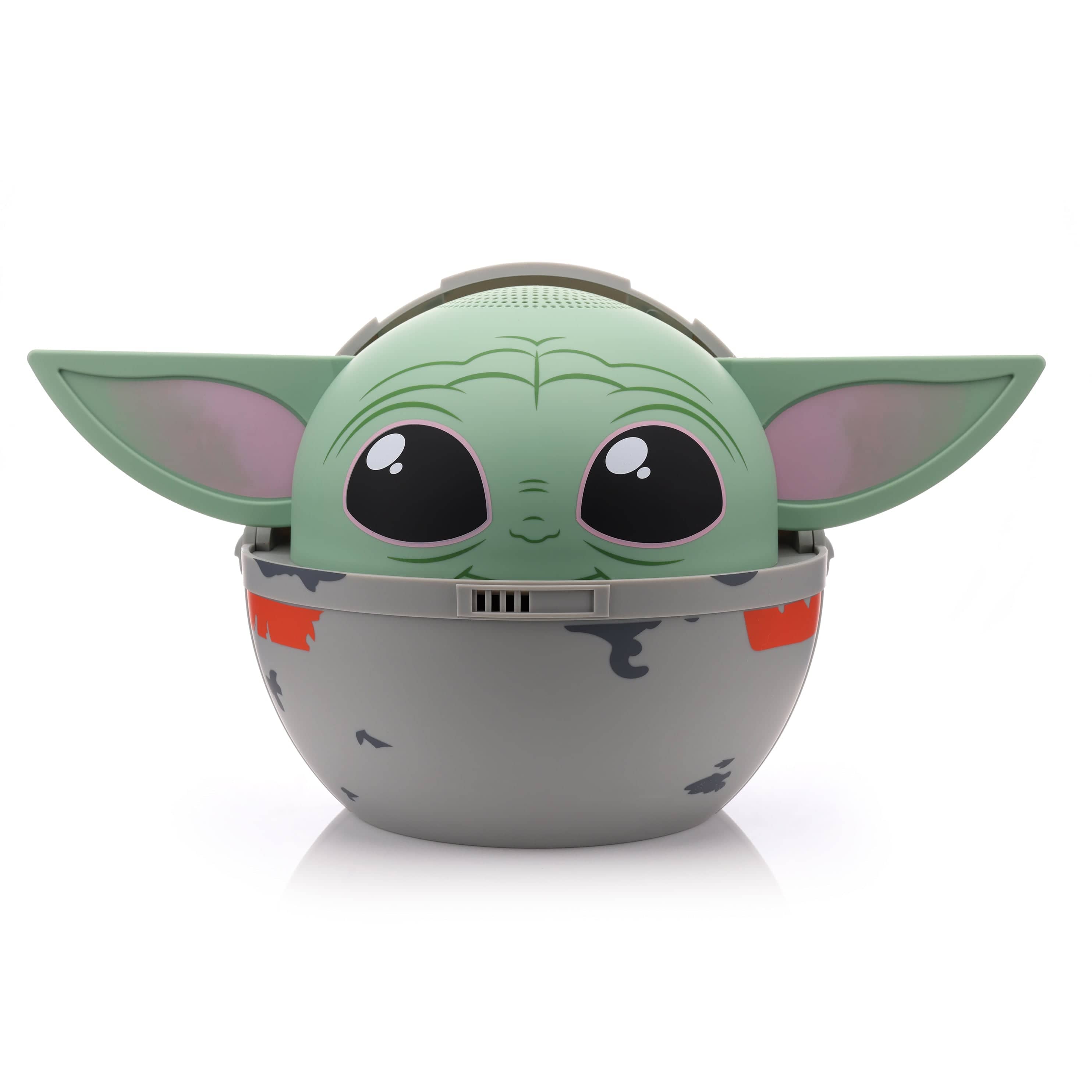 Star Wars: The Mandalorian Bigger Bitty Boomers Grogu in Pram 8" Bluetooth Speaker Live Bigger! Enjoy your music with the clear, rich, powerful sound of the Bigger Bitty Boomers Bluetooth speaker. This isn’t your typical boring speaker, toss one of these into any room and instantly add a bold (and totally cool) centrepiece. You can even pair two Bigger Bitty Boomers together to create a true stereo experience. Bigger sound requires some impressive power, and our built-in rechargeable battery delivers up to 8 hours of room-rocking wireless music play on a single charge. Easily connect to any Bluetooth-enabled device and start listening to your favourite playlist within seconds. Don’t have a Bluetooth device? That’s no problem, we’ve included USB and micro-SD ports as other options to play your tunes.