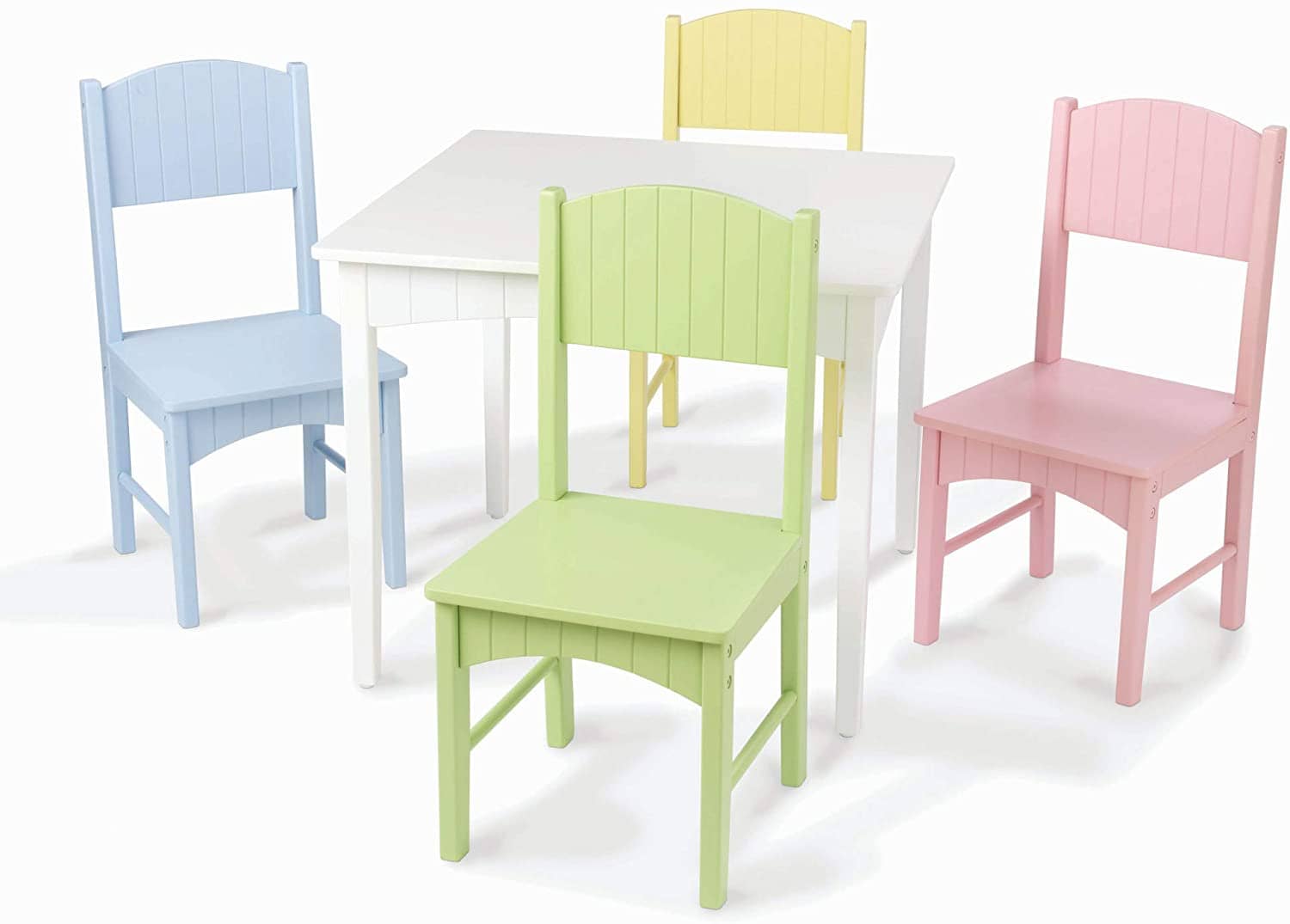 - The newest table and chair set from is the stylish Nantucket Table and four chair set in pastel. The table is white and comes with four chairs: one sky, sage, buttercup, and pink. Great addition to any child's bedroom or play area.