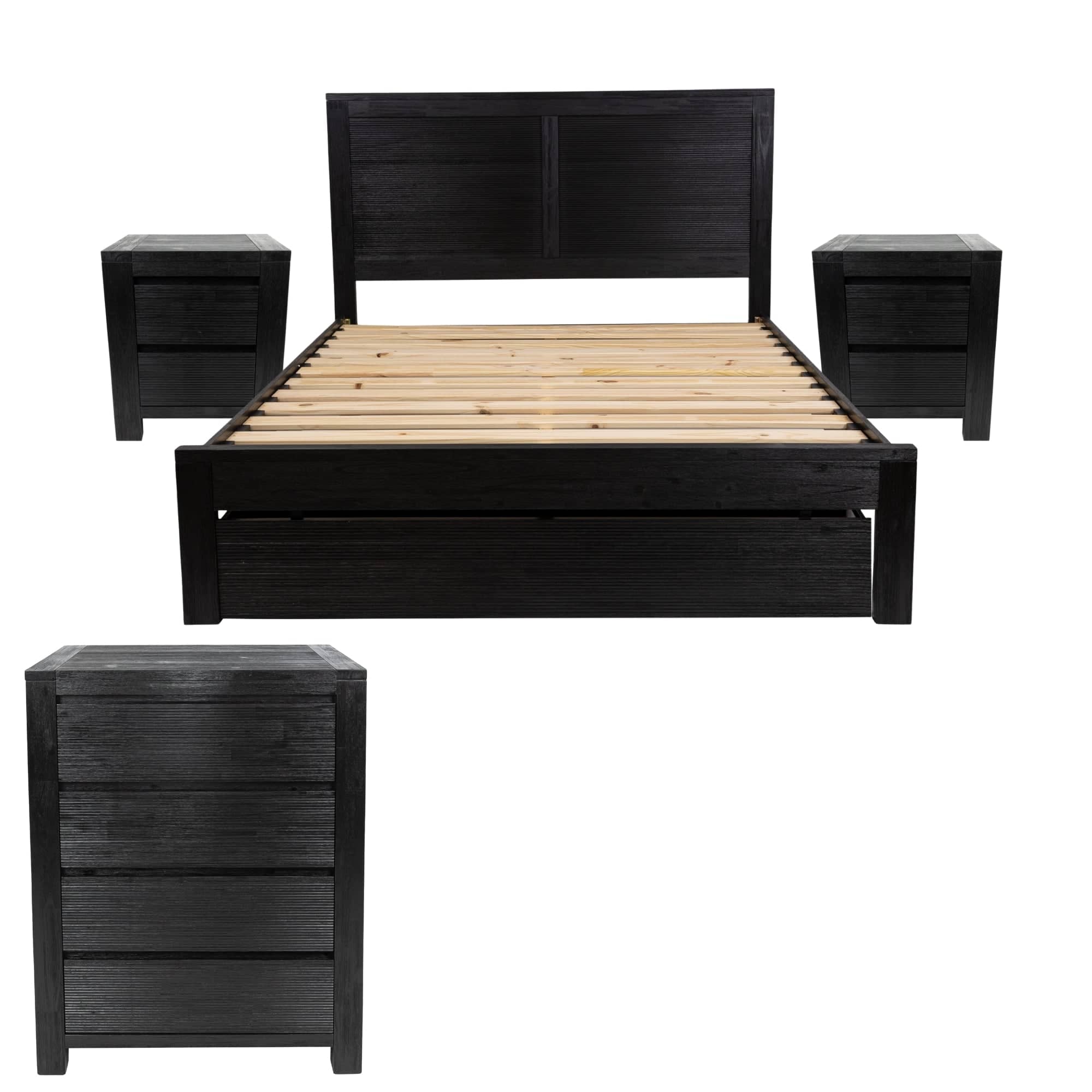Tofino 4pc King Bed Suite Bedside Tallboy Bedroom Furniture Package - Black