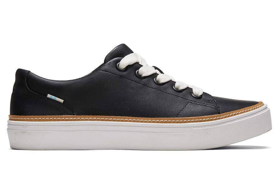 TOMS Womens Casual Leather Sneakers Shoes Lace Ups Low Cut - Black - US 7