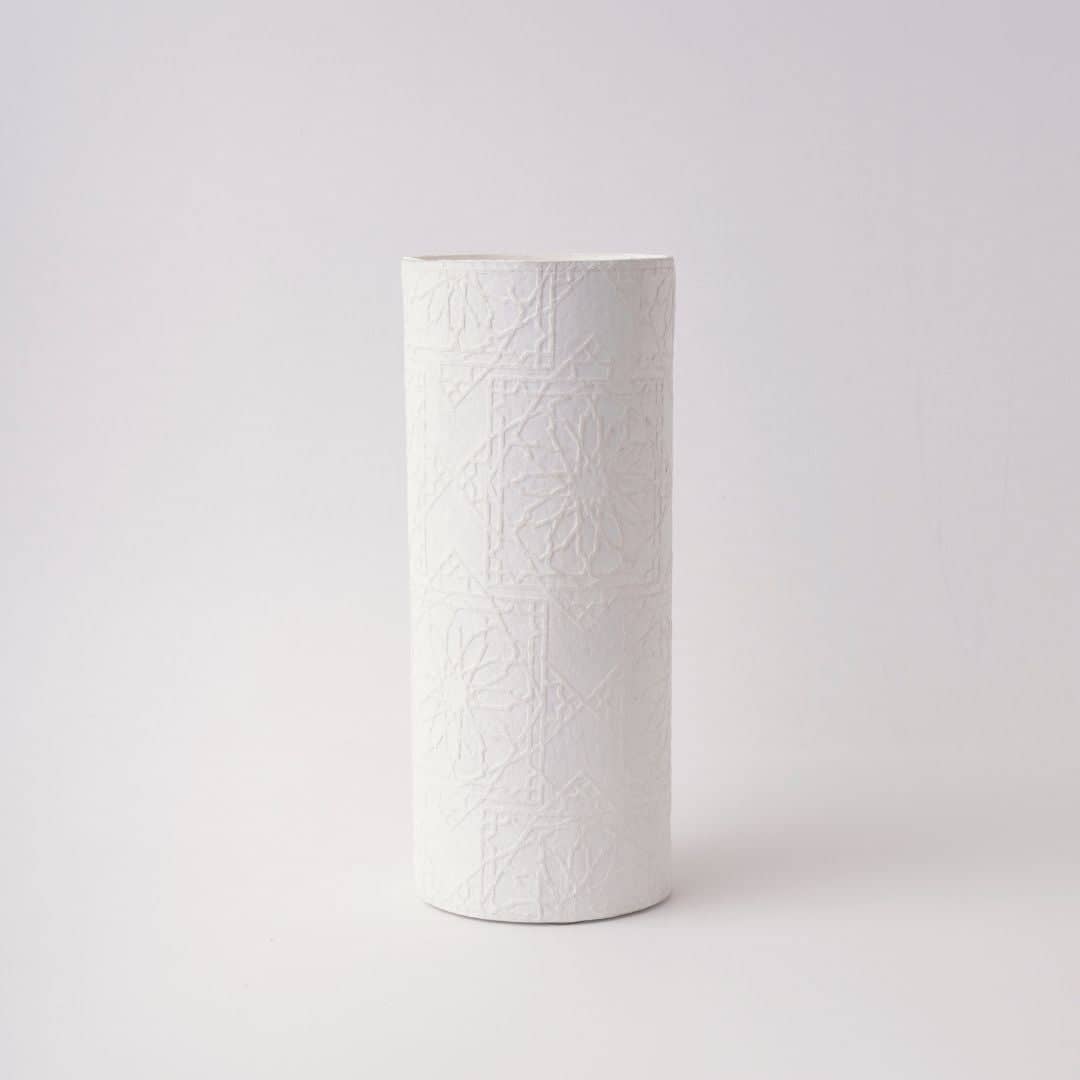 Our Diwali design featuring motifs that are delicately hand pressed by master artisans is now available in a tall cylinder vase. This is designed to elevate a simple bouquet of flowers or taller stems cut from the garden.