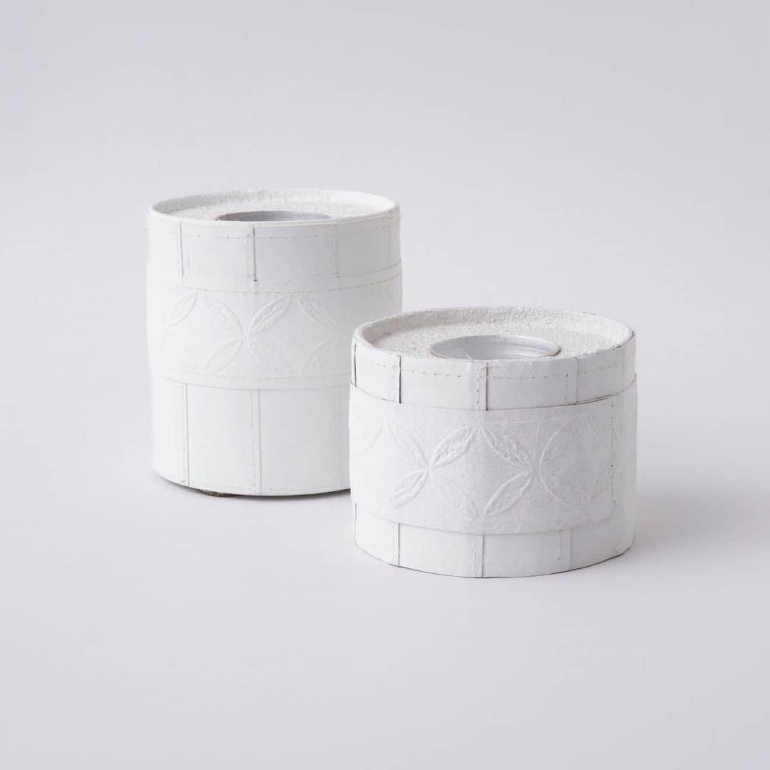 Our leather look hand crafted tealight holders are made from recycled paper and designed to be paired safely with a normal tealight candle.