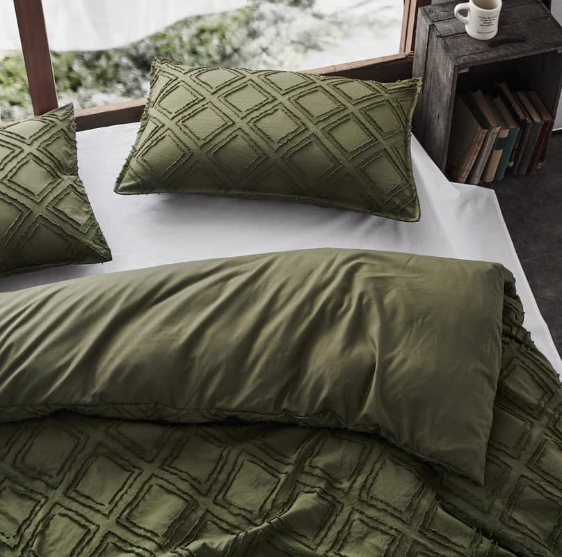 Tufted ultra soft microfiber quilt cover set-king khaiki green
