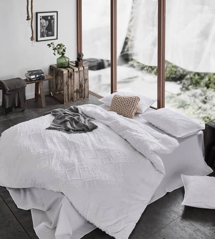 Front is tufted microfiber, reverse is brushed microfiber, Comes with 1 queen size quilt cover 210x210cm & 2 pillowcases 48x73cm,machine washable, zipper closure,