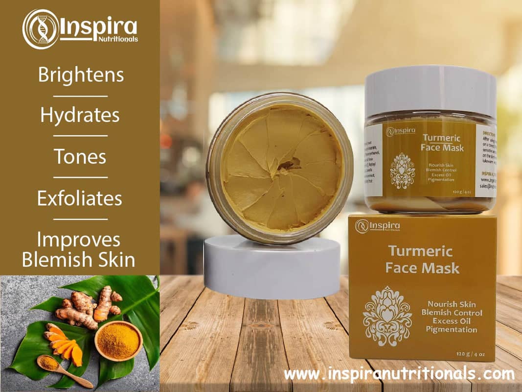 Inspira Turmeric Face Mask is carefully formulated with not only Turmeric (Curcuma longa root powder) but also essential ingredients like Safflower oil, Rosehip oil, Japanese green tea, Vitamins A and E, Cucumber fruit extract, and Calendula extract to help detox, repair and rejuvenate the skin. Brightens Improves the appearance of blemished skin Gently exfoliates Softens the skin Hydrates the skin Tones the skin Reduces excess oil Skin pigmentation Nourishes the skin Why use Inspira Turmeric Face Masks? You may want to try the Inspira Turmeric Face Mask to help reduce acne and any resulting scars. The anti-inflammatory qualities can target your pores and calm the skin. Applying the Face Mask to your face can help calm skin rashes, lighten dark spots and hyperpigmentation, treat acne and brighten skin tone, just to name a few of its benefits. Formulated with Rosehip oil, Vitamin A and Vitamin E as antioxidants to synergistically combat visible sun damage and help prevent photoaging while reducing the negative effects of UV exposure. The retinoids found in these ingredients are known for their ability to reduce hyperpigmentation and other signs of aging with regular use. Lycopene found in rosehip oil and Vitamin A is said to have skin-lightening and melanin reducing properties. Did you know? Turmeric works as a skin lightening agent for your skin. The curcumin in it reduces the excess melanin production and lightens your skin tone. Adding turmeric to your skincare routine can brighten your skin tone and reduce any kind of dark spots and pigmentation. Turmeric prevents skin cells from clumping together and clogging the pores. Since it's antiseptic and antibacterial, it may effectively stop the growth of acne-causing bacteria. Additionally, its anti-inflammatory properties promote quicker healing by calming areas that are already inflamed. Safflower oil has pain relieving effects as well as anti-inflammatory and antioxidant benefits. It is often used topically due to its moisturising effects � the oil can help the skin appear smoother and softer. Safflower oil has been found to be non-comedogenic, meaning it won�t clog your pores. Linoleic acid is thought to help maintain the integrity of the outer layer of the skin by preventing flaking. Rosehip oil contains a wealth of essential fatty acids, including linoleic and linolenic acid to help keep cell walls strong so they don�t lose water. The many fatty acids in rosehip oil make it an excellent option for hydrating dry, itchy skin. Rosehip oil is a natural exfoliation to help reduce dullness leaving the skin glowing and vibrant. Vitamin A, or retinol, in rosehip oil, encourages skin cell turnover and is essential for the production of collagen. Rosehip has also been shown to inhibit the creation of MMP-1, an enzyme that breaks down collagen in the body, resulting in increased skin elasticity. The mighty catechins in Japanese green tea have an antibacterial, anti-inflammatory, and antibiotic effect, which helps fight acne and unclog pores. It reduces sebum secretion which can lead to acne. Not only can it help your skin look younger but it also has the potential for preventing melanoma and non-melanoma skin cancers. Cucumber is well known to hydrate the skin keeping it healthy while reducing redness, skin aging, and inflammation. Rich in antioxidants to fight against oxidative damage to the skin. Folic acid and caffeic acid are two components found in cucumbers that can boost collagen production in the skin and prevents all the aging signs like fine lines, age spots, and wrinkles. Calendula has been shown to prevent dermatitis or skin inflammation as it has antifungal, anti-inflammatory, and antibacterial properties. With daily use, the skin will tighten, heal damaged cells, pump up the skin, and preserve the health of your skin�s ecosystem.