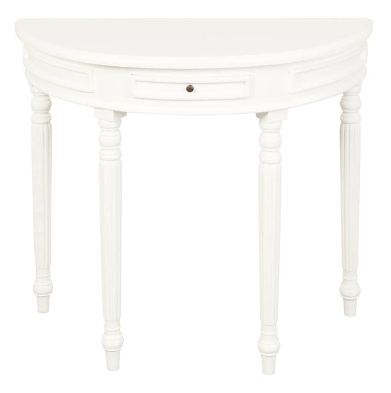 Elevate your home décor with the Huntley Turn Leg Half Round Sofa Table, a stunning blend of European elegance and timeless craftsmanship. This exquisite piece is meticulously crafted from solid mahogany timber, ensuring durability and a luxurious finish that will enhance any interior setting. The Huntley table's half-round design offers a sophisticated and space-saving solution, perfect for entryways, hallways, or as an accent piece in your living room. The beautifully turned legs add a touch of classic charm, reminiscent of Parisian and European furniture styles, bringing an air of refinement and grace to your home. The single drawer, adorned with a subtle brass knob, provides convenient storage for your essentials while maintaining the table's elegant silhouette. The rich, dark finish of the mahogany timber enhances the table's sophisticated appeal, making it a versatile addition that complements both traditional and contemporary décor. Whether used as a console table to welcome guests in your foyer or as a chic accent piece in your living room, the Huntley Turn Leg Half Round Sofa Table combines functionality with style. Its minimal assembly requirements ensure that you can enjoy its beauty and practicality with ease.