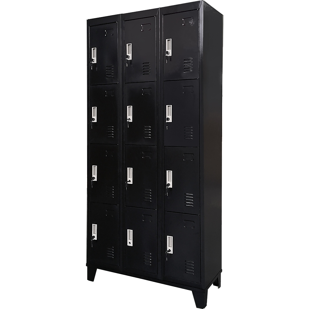 A full twelve lockers are arranged in a 3 x 4 grid, each providing ample storage space for a wide range of personal belongings. When you have multiple-user storage needs, this is your answer.