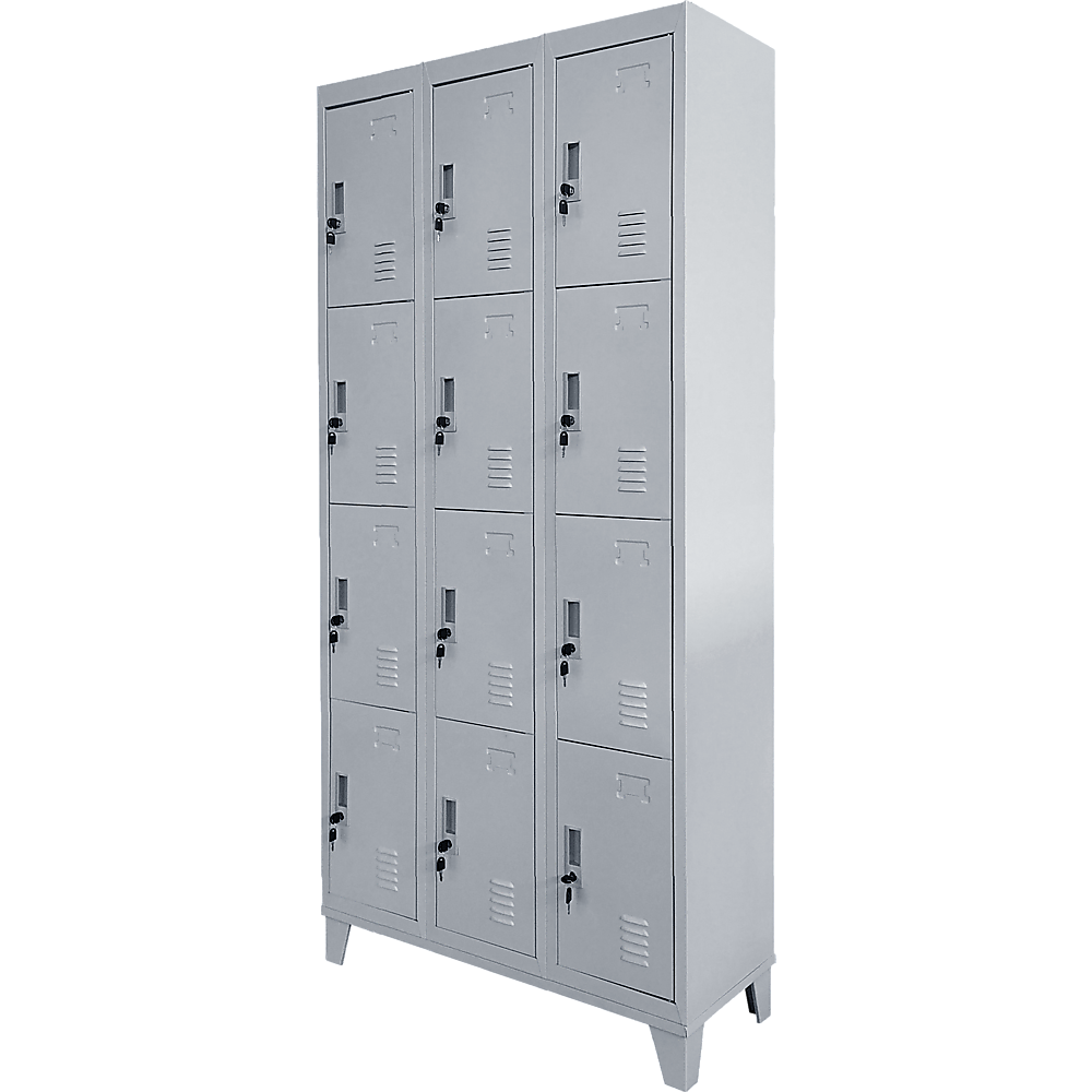 A full twelve lockers are arranged in a 3 x 4 grid, each providing ample storage space for a wide range of personal belongings. When you have multiple-user storage needs, this is your answer.