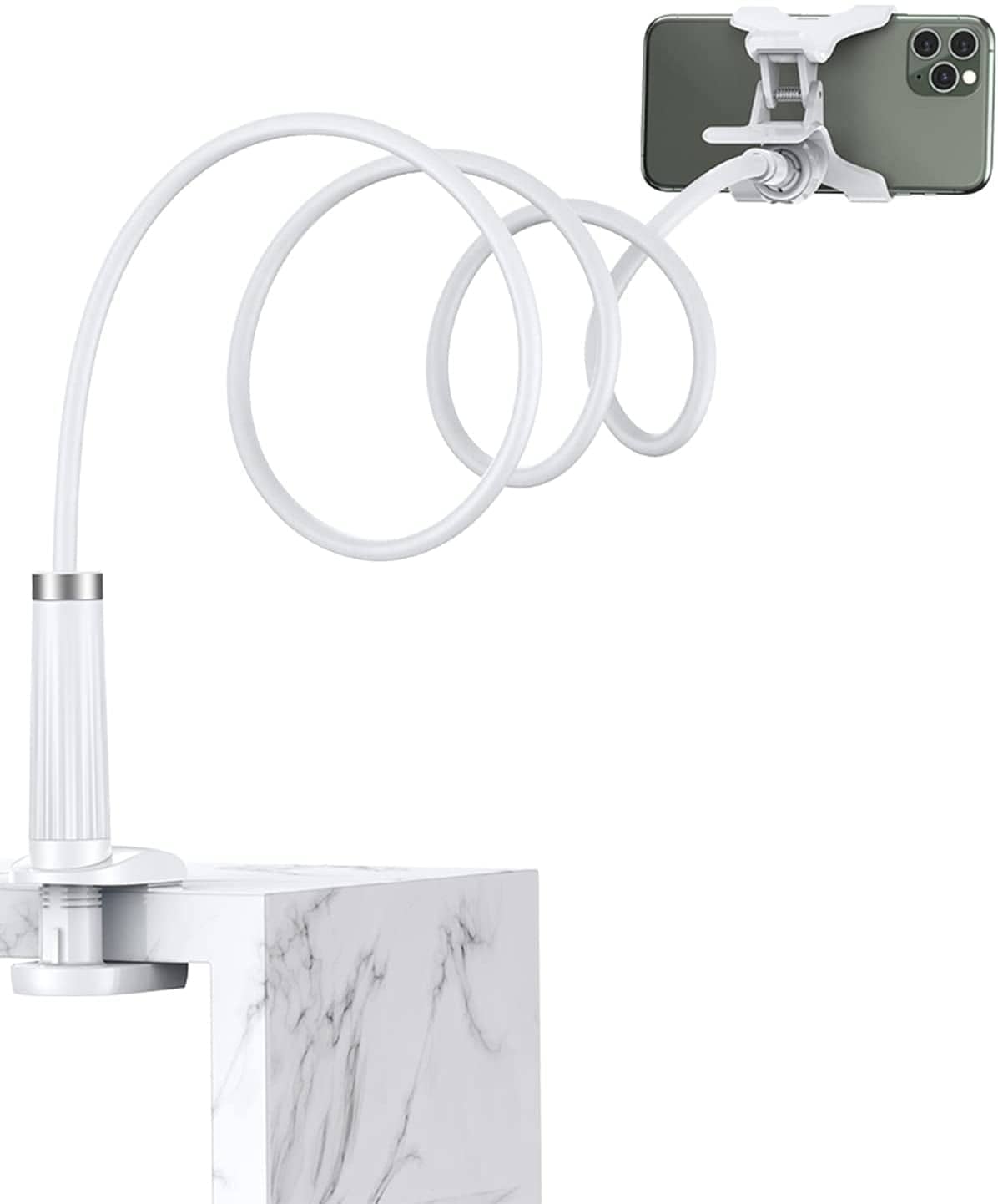UGREEN gooseneck phone holder with clamp allows you easily to twist its long arm to the proper position as you need, a lifesaver for protecting you from neck pain. It is a quite flexible overhead lazy phone mount for watching videos, facetime calls, reading, playing games or taking a virtual class when you are in a bedroom, living room, kitchen, office, gym and even laying in bed or sofa.