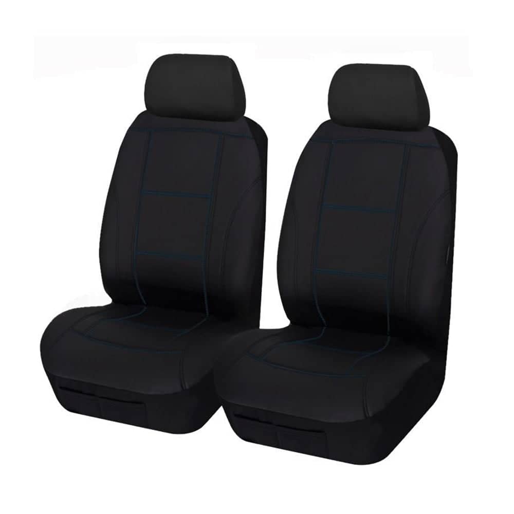 Universal Lavish Front Seat Covers Size 30/35 | Black/Blue Stitching