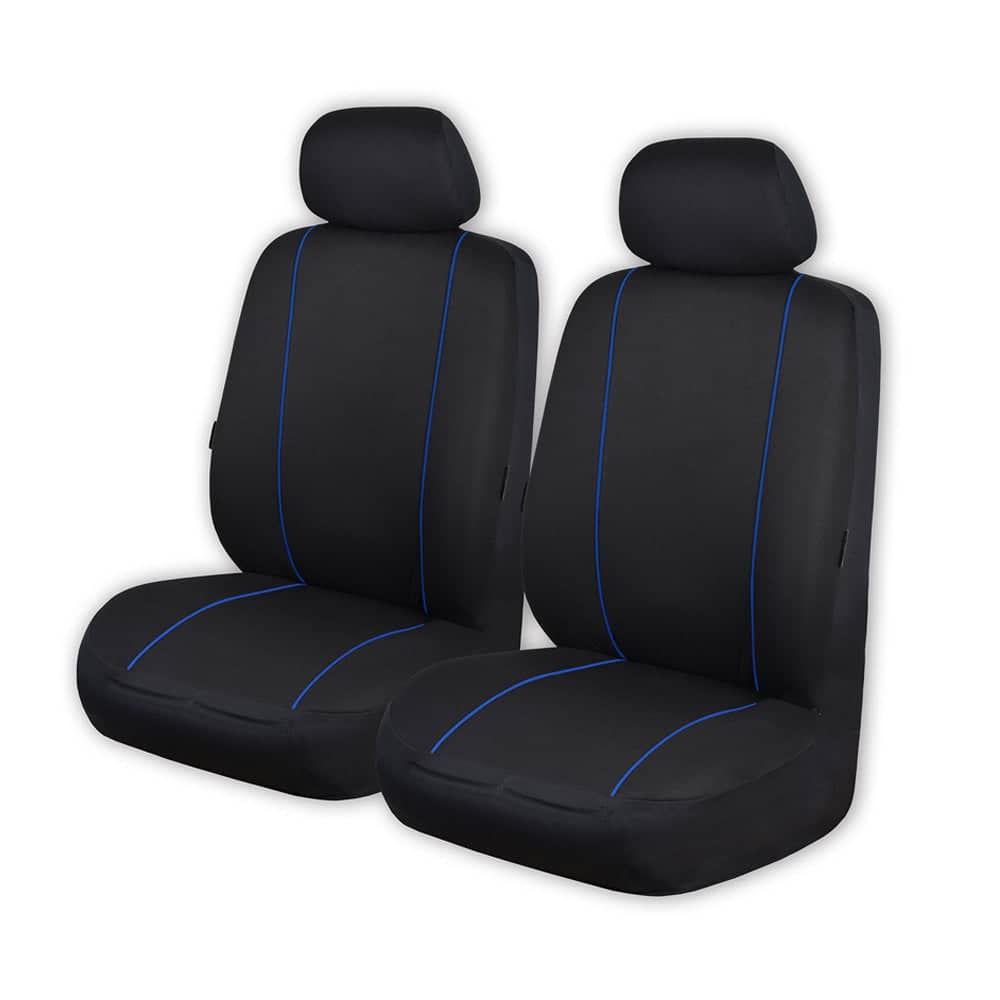 Universal Pinnacle Front Seat Covers Size 30/35 | Black/Blue Piping