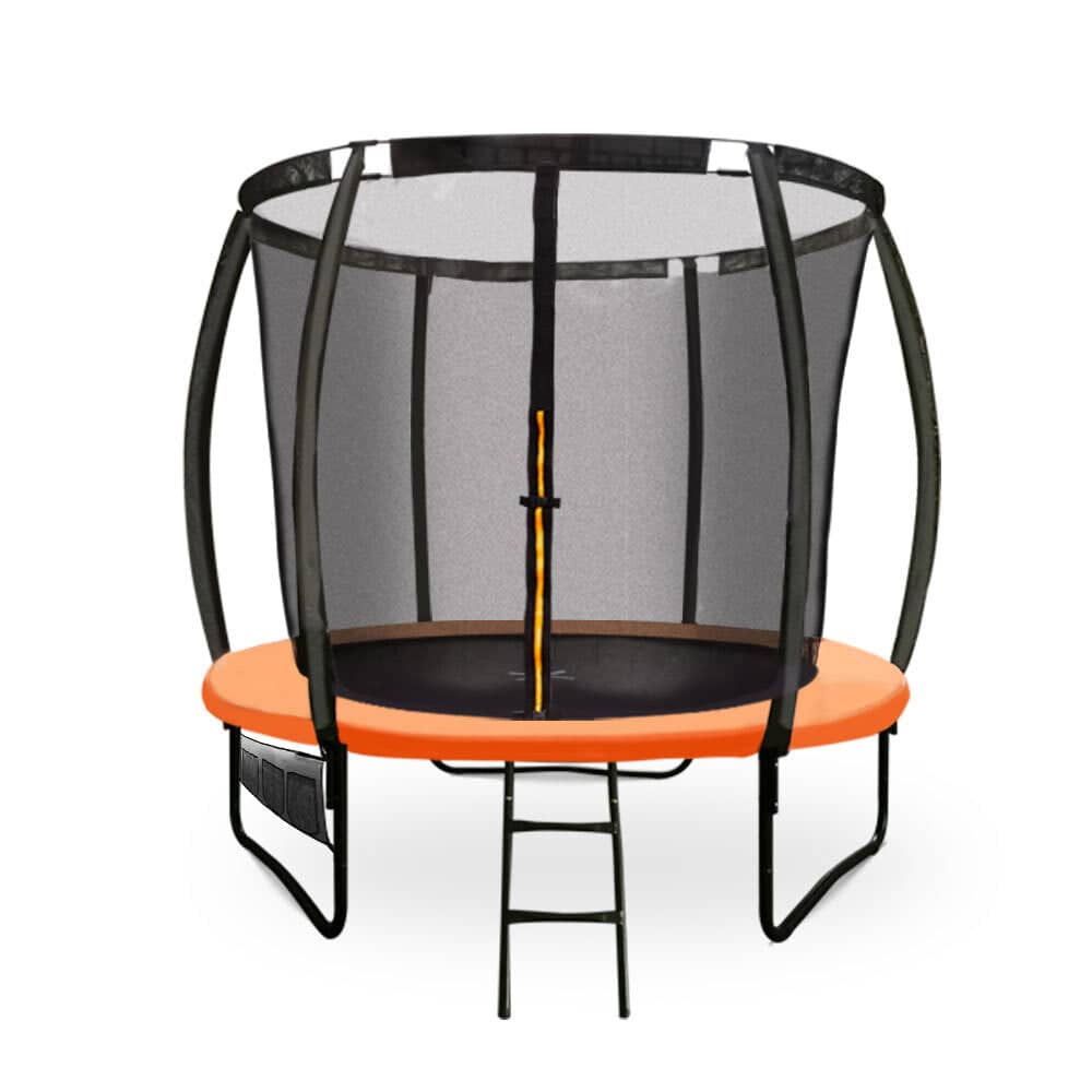 Triple-rate springs, strong rigid frame, curved safety poles, enclosure safety net, safety pads and quality mat create a perfect balance between safety and excitement! This 8ft Trampoline is perfect for young, light jumpers and smaller backyards.