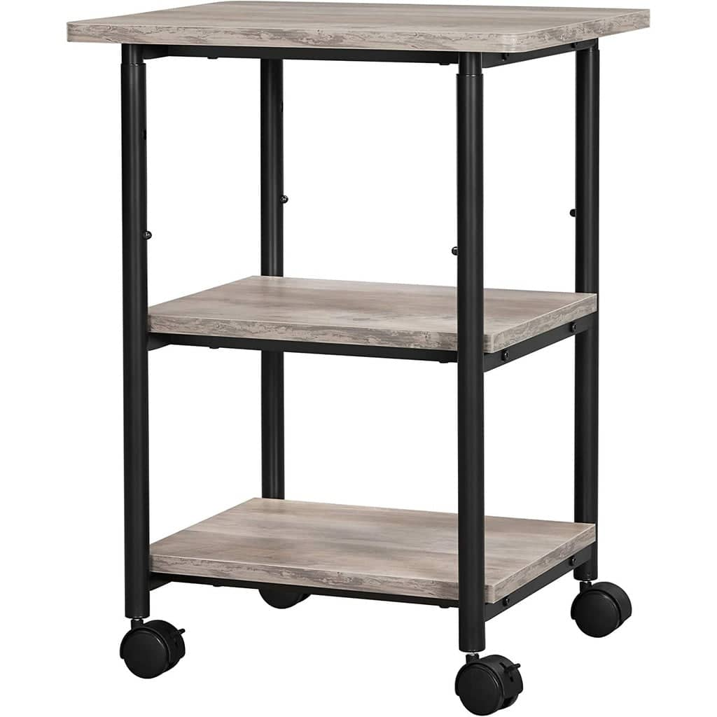 VASAGLE 3-Tier Machine Cart with Wheels and Adjustable Table Top Greige and Black OPS003B02