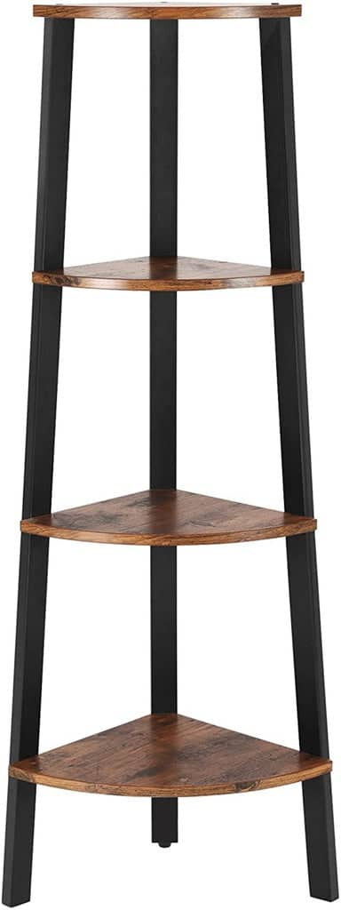 VASAGLE Corner Shelf 4-Tier Industrial Storage Rack Rustic Brown and Black