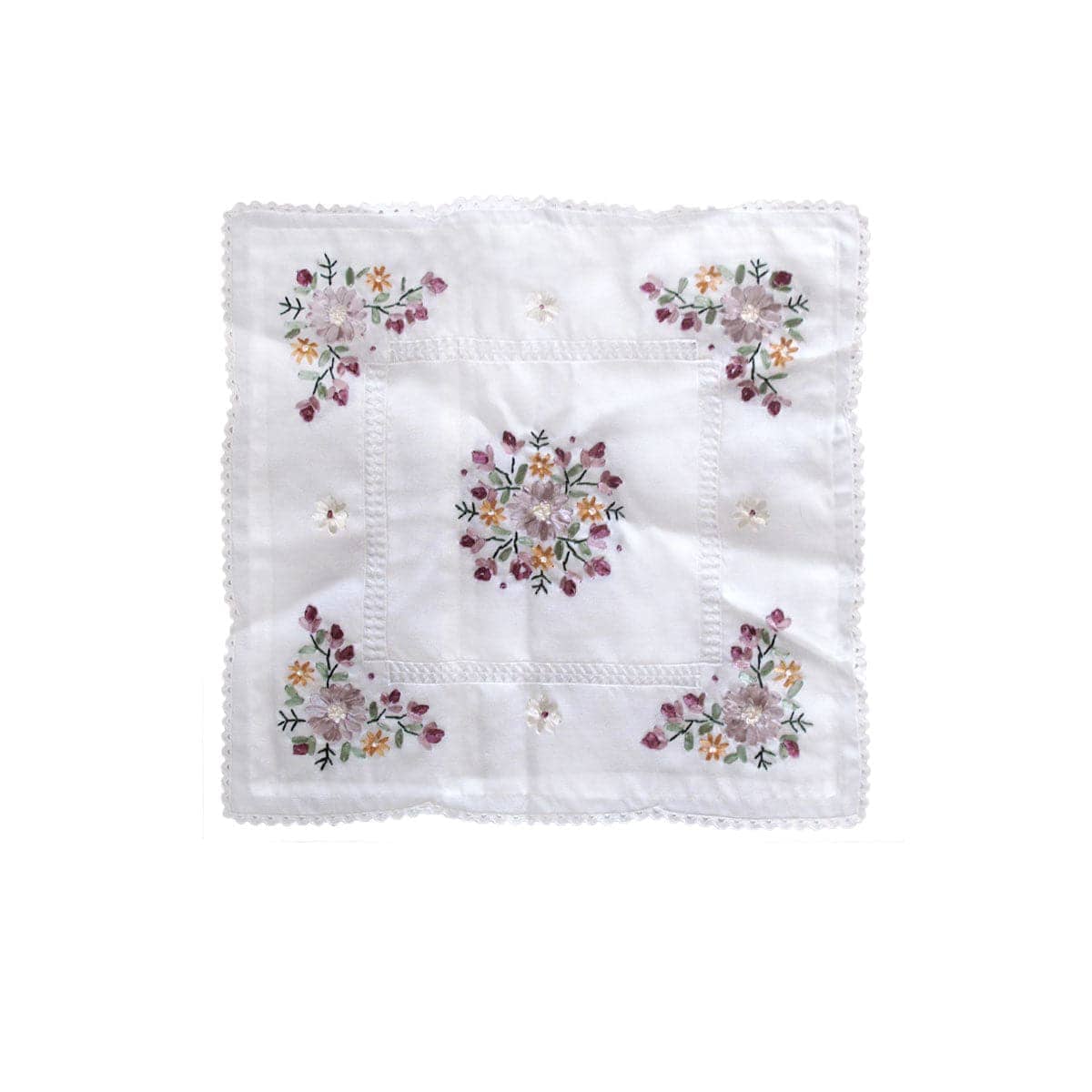 Add classic touch to your bedroom with this elegant Victoriana White Applique Embroidered Cushion Cover 45 x 45 cm. This cushion cover features applique and floral embroidery design in soft colour hues of lilac, white, green, pink, yellow, and mauve for a timeless and inviting bedroom atmosphere. It is made from strong and wrinkle resistant polyester fabric for long lasting use.