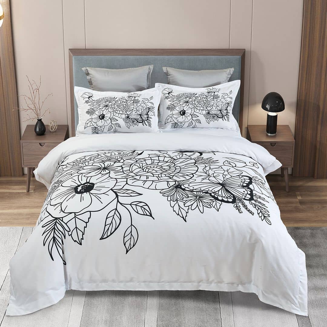 - Luxury Touch: Adorned with an exquisite embroidered border on pillowcases and a stylish flanged edge on the quilt cover for an elevated, sophisticated finish.
