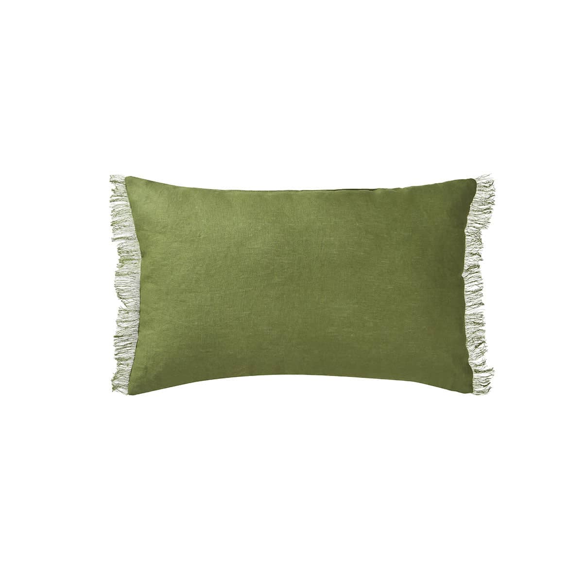 Vintage Design Homewares Olive French Linen Filled Cushion Oblong - 35cm x 55cm