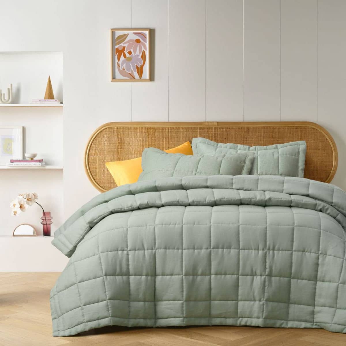 Vintage Design Homewares Sage French Linen Coverlet Set Queen