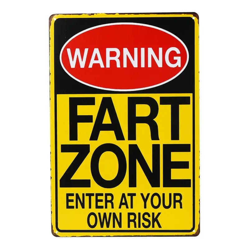 Introducing the "Vintage Fart Zone Warning Sign" — a cheeky addition to any space that promises to elicit laughs and light-heartedness wherever it's displayed. Crafted with a sense of humor and style, this funny metal sign is perfect for bathrooms, kitchens, offices, and more, making it an excellent humorous gift for friends, family, or even yourself!