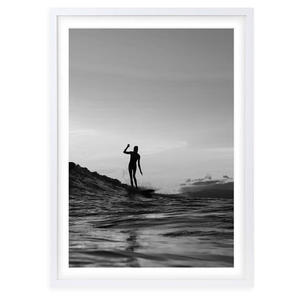 Wall Art's Monochrome Surfer Girl Large 105cm x 81cm Framed A1 Art Print