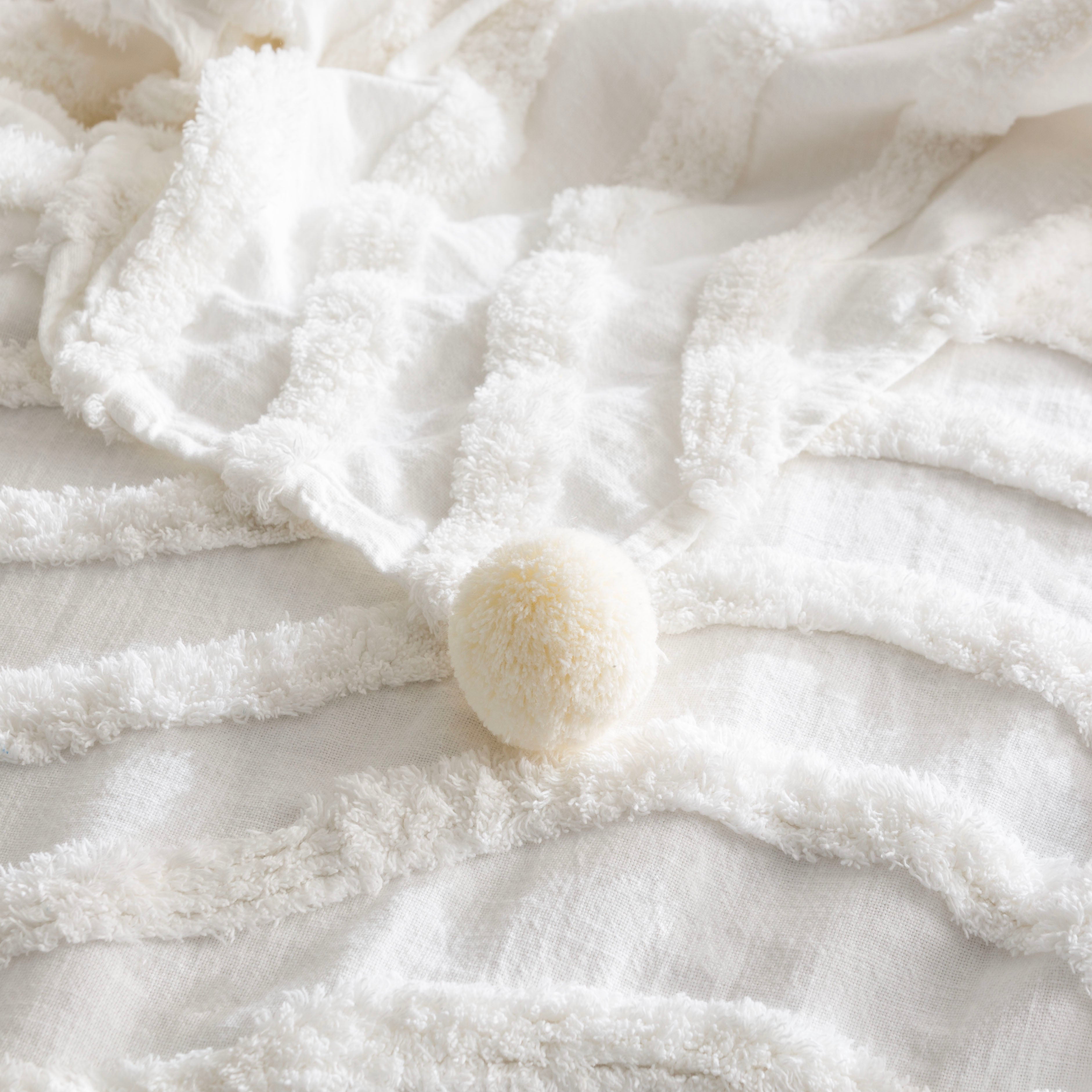 Wave Throws:Woven in the softest natural cotton for a sumptuous feel, Our Wave oversized Throw is a stylish layering accent. Its heavyweight construction boasts a plush feel perfect for any sofa, chair, or bed space. Heavily tufted front with exposed Wave Pattern features corner tassels. Oeko-Tex Green certified, so it...