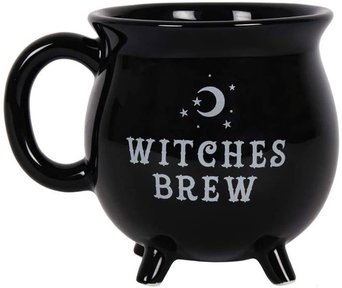 Witches brew cauldron mug is black with white in coloring and is made from ceramic. This brilliant mug is designed to look like a cauldron and features the words 'Witches Brew'. The perfect gift for a loved one.